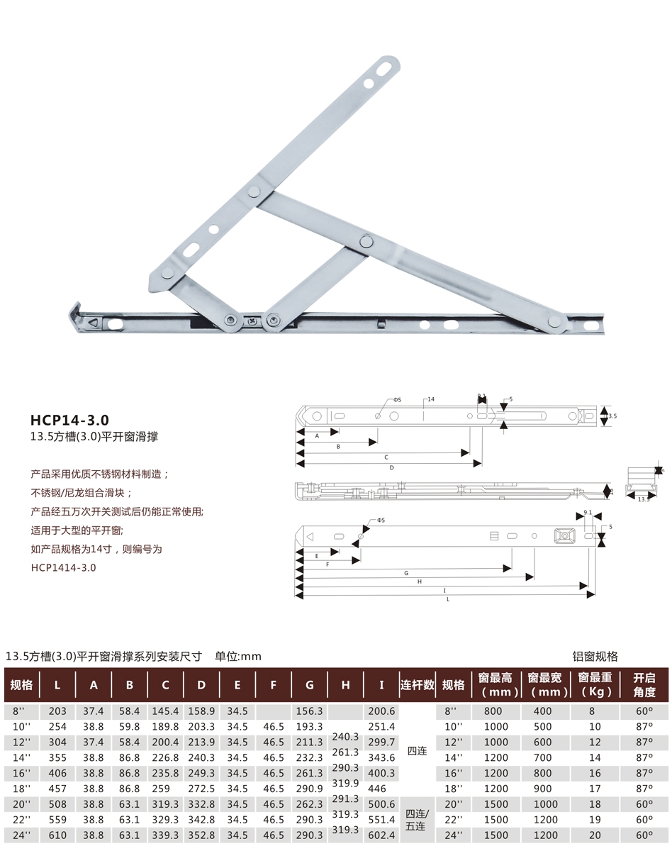 HCP14-3.0 13.5方槽(3.0)平开窗滑撑