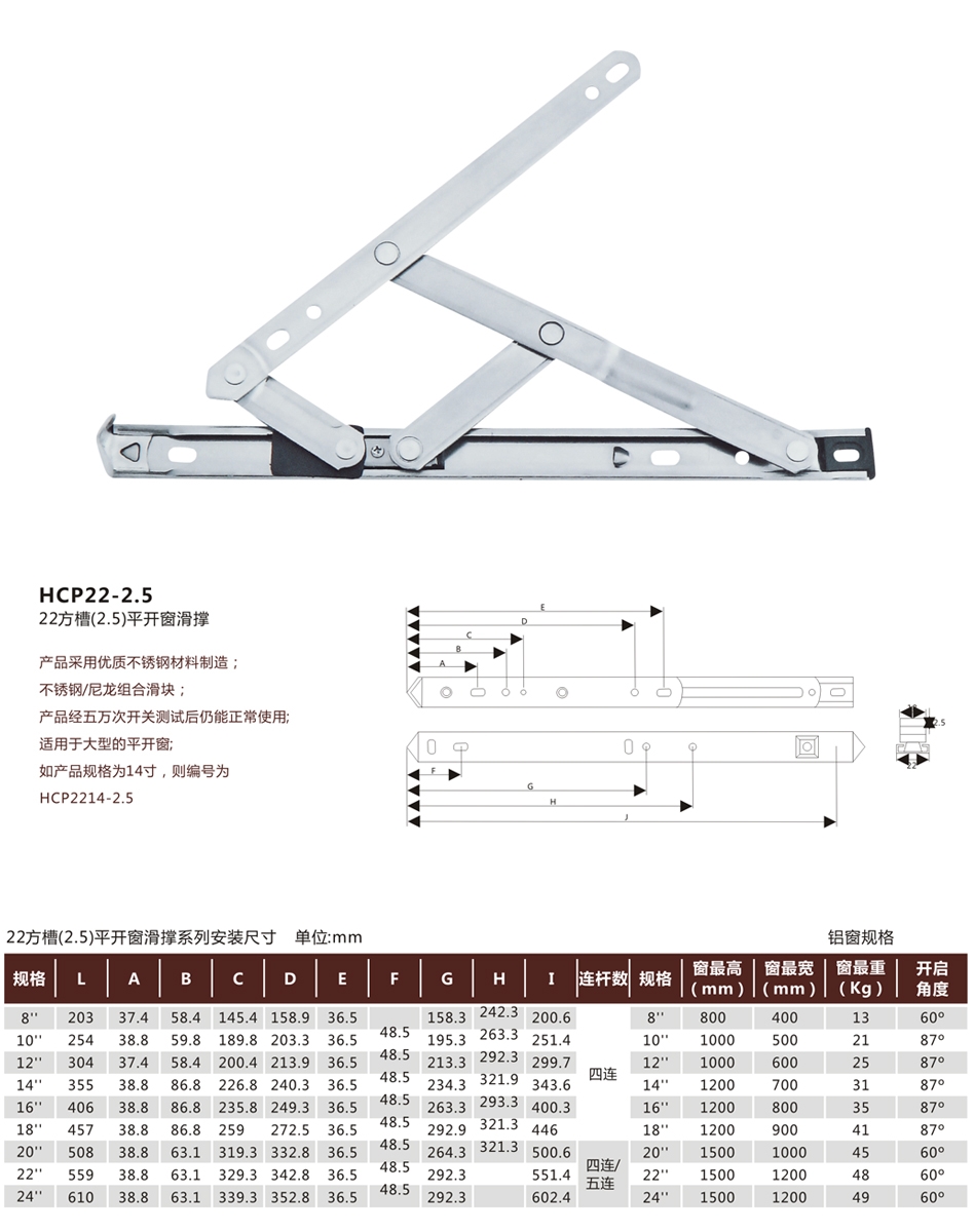 HCP22-2.5 22 22方槽(2.5)平开窗滑撑